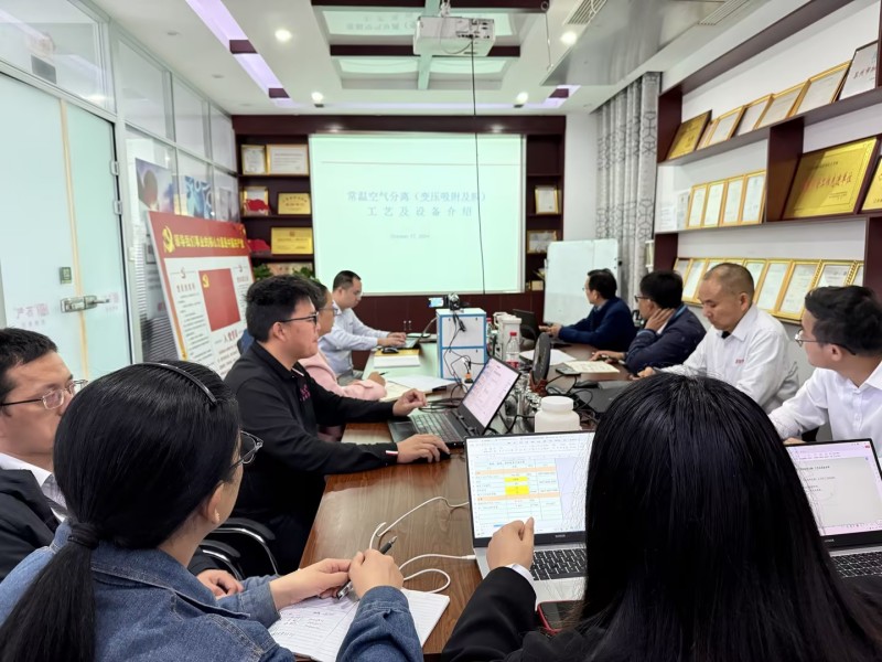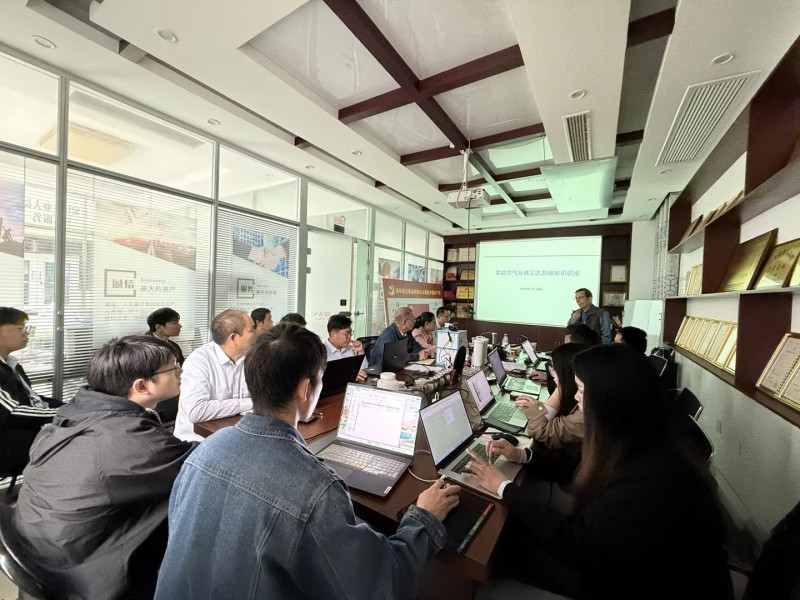 培訓中,沈老師簡要介紹了本次培訓的目的,并結合氣體設備市場,重點介紹了常溫空氣分離工藝基礎知識、常溫空氣分離(變壓吸附及膜)工藝及設備、碳分子篩及變壓吸附制氮技術、壓縮空氣膜干燥工藝及設備等知識,通過深入淺出的現場講解和提問方式,鼓勵學員們主動思考、積極發(fā)言。