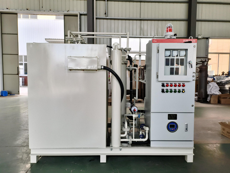氨分解制氫裝置具有結(jié)構(gòu)簡單、投資少、效率高等特點(diǎn),再通過我公司生成的HBFC系列氣體純化裝置,可以獲得露點(diǎn)為-60℃,殘氨量為5ppm,氫氣量為99.9%的高純氣體。